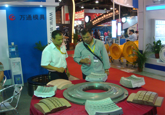 我公司作为参展商之一参加了展会。公司在展会中主要展出了半钢精铸铝雪地胎花纹块、雪地胎基模、胎侧板以及高精度斜平面模壳等体现公司精密加工技术的产品以及我们万通橡胶助剂有限公司的橡胶硫化促进剂NS、DZ、CZ、M、DM等产品,吸引了众多国内外专业客商的围观考察并对公司进行了好评。